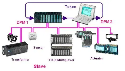 Slave......... เรียกอีกอย่างหนึ่งว่า สถานีถูกกระทํา ( Passive Station ) เนื่องจากไม่มีอํานาจในการถือครองบัส มีความสามารถเพียงรับส่งข้อมูลจากการร้องขอของ Master ได้แก่ อุปกรณ์อินพุทเอาท์พุทต่างๆ โดยที่ Master จะเป็นผู้ส่งข้อมูลเกี่ยวกับข้อกําหนดต่างๆของรูปแบบการสื่อสารเพื่อเป็นข้อตกลงที่ใช้ระหว่างร่วมกันในการแลกเปลี่ยนข้อมูล โดย Master จะวนมาสอบถามข้อมูลของ Slave ทุกตัวที่อยู่ในระบบอยู่ตลอดเวลา