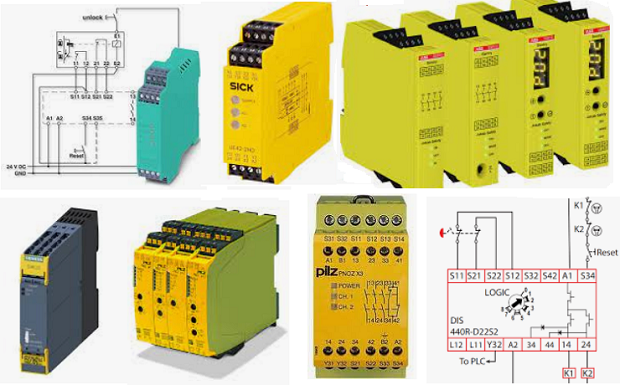 ตัวอย่างเซฟตี้รีเลย์แบบต่างๆที่ใช้ในวงจรควบคุมเครื่องจักรในอุตสาหกรรม