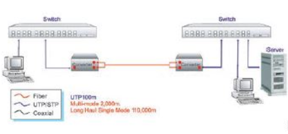 เนื่องจากการส่งสัญญาณผ่านสาย LAN ถูกจำกัดระยะทางไม่เกิน 100 เมตร แต่ในการใช้งานจำเป็นต้องเชื่อมโยงเครือข่ายคอมพิวเตอร์ที่มีระยะทางมากกว่าอาจเป็น 1,2,10 หรือ 100 กิโลเมตร จึงจำเป็นต้องส่งสัญญาณผ่านสาย Fiber Optic ซึ่งรองรับความเร็วและระยะทางที่ไกลขึ้น และจำเป็นต้องมี Fiber Optic Media Converter ทั้งต้นทางและปลายทางเพื่อแปลงสัญญาณไฟฟ้าของ Port RJ45 เป็นสัญญาณของแสง และส่งแสงผ่านสาย Fiber Optic โดยเมื่อถึงปลายทางก็จะแปลงกลับด้วย Fiber Optic Media Converter มาเป็นสัญญาณไฟฟ้าอีกครั้งหนึ่ง