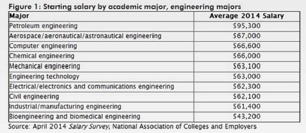 วิศวกรรมศาสตร์ สาขาอาชีพยอดฮิต ที่สามารถสร้างรายได้ให้กับผู้ที่สำเร็จการศึกษาในสาขานี้ค่อนข้างสูงอีก อาชีพหนึ่ง หากมีการจัดอันดับสาขาอาชีพรายได้ดีที่สุดในโลกก็มักจะพบว่าอาชีพในสาย วิศวกรรมยังคงครองตำแหน่งอยู่ในอันดับต้นๆ ของโลกเสมอ หลังจากที่ Life on campus ได้เสนอ 10 อันดับสายการแพทย์ที่รายได้ดีที่สุดในโลกประจำปี 2014 ไปเป็นที่เรียบร้อยแล้ว ก็คงจะพลาดไม่ได้กับสาขายอดฮิตอย่างวิศวกรรมศาสตร์ โดยผลการสำรวจจากเว็บไซด์ชื่อดัง National Association of Colleges and Employers หรือ NAC ได้ ทำการสำรวจและวิจัยรายได้ของวิศวฯ ในสาขาต่างๆ โดยเรียงลำดับจากค่าเฉลี่ยของเงินเดือนเริ่มต้น จนได้เป็น 10 อันดับสาขาวิศวกรรมที่มีรายได้สูงสุดประจำปี 2014 ดังนี้