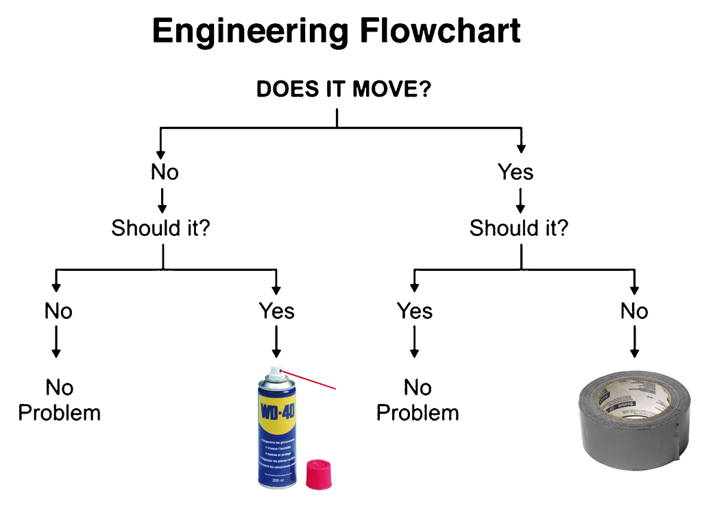 2.2) (No) โดยปกติแล้วอุปกรณ์หรือของสิ่งนี้จะต้องไม่มีการเคลื่อนไหวใดๆ => แสดงว่าผิดปกติและควรจัดการด้วย duct tape ( เทปสาระพัดประโยชน์)