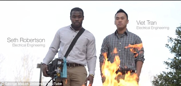 เซต โรเบิร์ตสัน กับเวียด ตรัน นักศึกษาด้านวิศวกรรมศาสตร์ มหาวิทยาลัยจอร์จเมสัน ในเมืองแฟร์แฟ็กซ์ มลรัฐเวอร์จิเนีย สร้างอุปกรณ์ขนาดพกพา ที่ใช้เสียงเป็นตัวดับไฟ