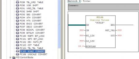 ครับ FC105 = SCALE CONVERT FC106 = UNSCALE CONVERT เป็น Function Block ใน Libraries ของ STEP7 ครับ |