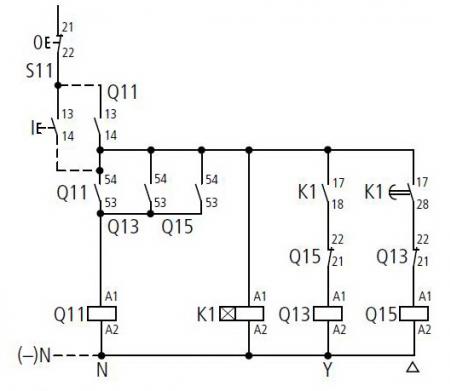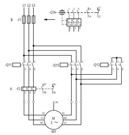 ในวงจร การสตาร์ท สตาร์-เดลต้า แล้วสามารถเลือกทางหมุนได้ โดยใช้ แมก 4 ตัว เข้าใจว่าการออกแบบให้ แมกสตาร์ ทำงานก่อนจะทำให้ต้องออกแบบวงจรที่ยุ่งยาก เลยต้องออกแบบให้ตัวเมน ทำงานก่อน จะทำให้ง่ายขึ้น ส่วนการออกแบบที่ทำให้ตัวสตาร์ ทำงานก่อนของวงจร สตาร์ เดลต้าแบบธรรมดา เป็นข้อสังเกตุของผม ที่มักจะพิจารณาดูวงจรคอนโทรล ที่มักติดมากับ แคตตาล๊อกผู้ผลิตแมกเนติกทั้งหลาย ส่วนเรื่องสปาร์คเป็นข้อสันนิษฐานของผมที่เอามาอ้างอิงกับการทำงานดังกล่าว ซึ่งผมยังไม่เจอเลยว่า ผู้ผลิตรายไหนออกแบบให้ ตัวเมนทำงาน่ก่อน ยกเว้นที่อื่นที่ไม่ใช่มาจากแหล่งผู้ผลิต แมกเนติก วงจรด้านล่างและที่ผมโพสไปก่อนหน้านี้ ผมเอามาจาก แคตตาล๊อกของ Moller ครับ |