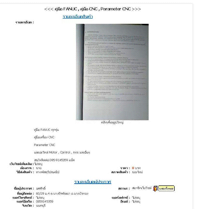 ขอความกรุณาใครมีคู่มือเครื่องรุ่นนี้ขอสำเนายินดีเรื่องค่าใช้จ่าย เนื่องจาก parameter หมวด 900 หาย หรือ ใครทราบค่าพารามิเตอร์หมวดนี้ขอความกรุณาด้วยครับ จักรขอบพระคุณยิ่ง sahathon.w@hotmail.com |