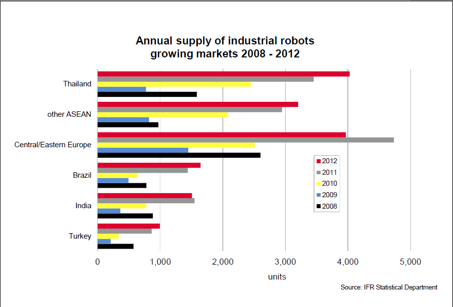 เป็น Handling Robot 43.75% ของยอดจำหน่ายทั้งหมด หรือราว 86,500 unit ในประเทศไทย มียอดจำหน่าย มากกว่า 4000 unit ในปี 2012 |