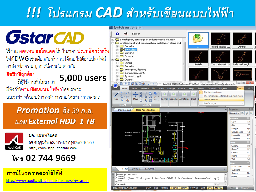 โปรแกรม CAD ที่ใช้งานเหมือน ออโตแคด แต่ ราคา ถูกเกินครึ่ง มีคำสั่งในการเขียนแบบไฟฟ้าโรงงาน มี block มาตรฐาน คำสั่งช่วยนับ อุปกรณ์ ทำงานได้เร็วขึ้น หมดกังวลเรื่องลิขสิทธิ์ สนใจสอบถามได้ที่ 02 744 9669 www.applicadthai.com |