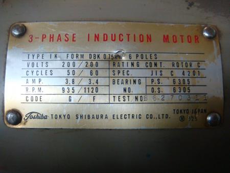0.75 kw 6 poles amp 3.8/3.4 volt 200/200 rpm 935/1120 cycle 50/50 |