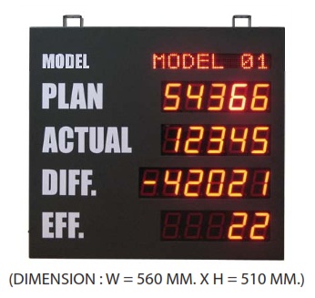 ป้ายบอกจำนวนสินค้าที่ผลิตได้ ตัวอย่าง Taget = xxxxx Actual =xxxxx Time = xxxx |