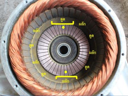 พอจะดูออกไหม ว่าสแปนขดลวดเท่าไหร่ 1- ? ดูคร่าวๆ น่าจะเป็น 10 โปลแต่ทำไมขดลวด ปลายคอยล์ดูกว้างมาก สแปนจะเป็นตัวกำหนด โปล และขั้วแม่เหล็ก ที่หลุดออกมาอีกทีนึง |
