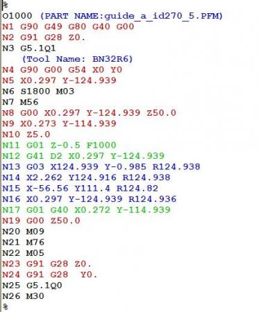 555 คำสั่ง G01 จากบรรทัดที่ 11 จะหายไปเนื่องจาก มี G41 เข้ามา (อยู่ในกลุ่มเดียวกัน) ทำให้ การป้อนค่า X Y Z ทำไม่ได้ เพราะไม่รู้ว่าจะทำอะไร จึงต้อง มี G01 สั่งตามเข้าไปด้วย การใช้ G40 ยกเลิก จำเป็นต้องมาก่อน คำสั่งเคลื่อนที่ เหมือนกับการเรียก G41, G42 ซึ่งเมื่อสั่งแล้ว ต้องมี คำสั่งเคลื่อนที่ G01, G02, G03 ตามมาครับ |