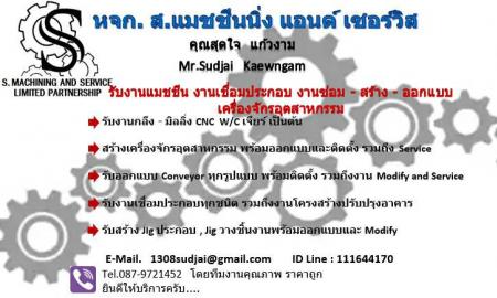 หจก. ส.แมชชีนนิ่ง แอนด์ เซอร์วิส 1) รับงานกลึง มิลลิ่ง ผลิตชิ้นส่วนเครื่องจักรกล 2) งานผลิตตามแบบทุกชนิด 3) Welding และงานด่วนตามต้องการ ! ชลบุรี สนใจสามารถติดต่อสอบถามได้ที่ Tel: 081-1396018 |