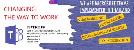 ที่ช่วยให้การติดต่อสื่อสาร เพื่อให้การประสานงานกันของทุกฝ่ายเป็นไปอย่างราบรื่น เข้ากับรูปแบบการทำงานของโลกสมัยใหม่ที่มุ่งเน้นการทำงานเป็นทีมให้สอดประสานกันมากขึ้น เพื่อให้ทุกคนได้ช่วยเหลือกัน และประสบความสำเร็จไปด้วยกัน ด้วยรูปแบบการใช้งานที่ตอบโจทย์ทั้งการทำงานบนคลาวด์และบนอุปกรณ์มือถือ ให้ทีมงานพูดคุยโทรศัพท์กับภายนอกองค์กรหรือรับสายโทรศัพท์จากลูกค้า ปรึกษาและแชร์ข้อมูลกันได้อย่างสะดวกรวดเร็ว ไม่ว่าจะเป็นไฟล์ หรือรูปภาพ ฯลฯ Microsoft Teams คือบริการใหม่ เป็นบริการพื้นที่ทำงานแบบเน้นการสนทนา (Chat-based Workspace) แบบใหม่ ที่ทำงานร่วมกับ Office 365 ได้อย่างลงตัว ช่วยให้ทีมงานเข้ามาอยู่ในพื้นที่เดียวกัน สามารถพูดคุย สนทนา แชร์เนื้อหาและเครื่องมือต่างๆ ร่วมกันได้ SunCTI Team ให้บริการติดตั้งระบบ Skype for Business และ Microsoft Teams รวมถึงการให้คำปรึกษาและดูแลบริการหลังการขาย แก่ลูกค้าในประเทศไทยและภูมิภาคเอเชีย โดยทีมงานวิศวกรที่เชี่ยวชาญ มีประสบการณ์ติดตั้งให้แก่องค์กรใหญ่ๆ ผ่านการอบรมและมีใบรับรองจากทาง Microsoft (Microsoft Certified Person) สนใจสอบถามรายละเอียดได้ที่ SunCTI Technology Innovation Co.,Ltd. Website : http://www.suncti.co.th Email : sfb@suncti.co.th Phone : 0854846847 หรือ 029610991[color=blue][/color] |