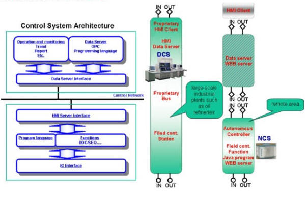 หากจะพูดถึง DCS วิศวกรระบบทุกคนต่างรู้จักว่านั่นคือ Distributed Control System ซึ่งเป็นระบบควบคุมและเครื่องมือวัดคุมที่มีสเถียรภาพดีมาและเป็นระบบที่มีใช้มานานกว่า 85 ปี และนิยมเลือกใช้งานในวงการอุตสาหกรรมและวิศวกรรมมากมาย แต่ทั้งนี้ทั้งนั้น DCS เป็นระบบที่มีข้อด้อยอย่างหนึ่งคือ การที่ไม่เปิดโอกาสให้ติดต่อกับระบบเน็ตเวิร์คอื่น ๆ จึงทำให้เราต้องเลี่ยงมาใช้เทคนิคอื่นในการติดต่อกับ DCS เช่น เชื่อมต่อผ่าน OPC Server ไปยัง SCADA Software อีกที เราจึงสามารถส่งข้อมูลที่ได้จาก DCS เพื่อนำไปวิเคราะห์ และควบคุม DCS ผ่านระบบเน็ตเวิร์คได้ บางครั้งเรานำข้อมูลที่ได้มาสร้างเป็นเงื่อนไขเพื่อสั่งงาน PLC ในเน็ตเวิร์คอีกที ซึ่งวิธีนี้ก็เป็นวิธีการที่ดีอย่างหนึ่งเพื่อเชื่อมโยง DCS ให้สามารถทำงานร่วมกับอุปกรณ์อื่น ๆ ภายในเน็ตเวิร์ค แต่ก็ยังมีฟังก์ชั่นการทำงานของ DCS อีกหลายประการที่เราไม่สามารถติดต่อได้โดยตรง เช่น Loop control ต่าง ๆ นอกจากนั้นยังเป็นความไม่เหมาะสมในการ Integrated ระบบต่าง ๆ เข้ากับ DCS ที่เป็นระบบแบบปิด |