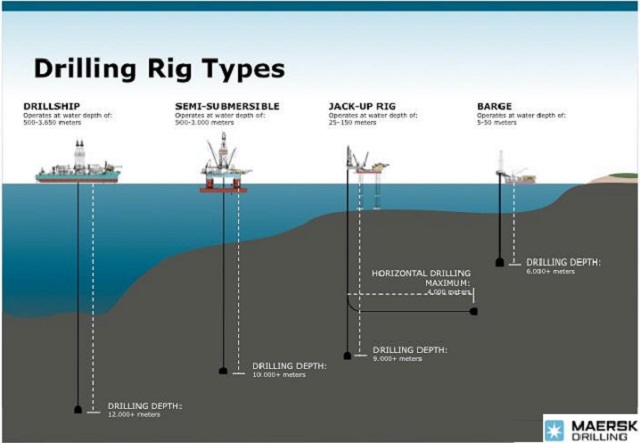 ภาพเปรียบเทียบให้สมรรถนะและขีดความสามารถในการขุดเจาะของแท่นเจาะนอกชายฝั่งแต่ละประเภท (Cr: MEARSEK Drilling)