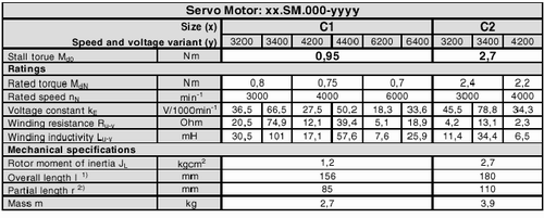 ตัวอย่าง ตารางคุณสมบัติทางเทคนิคของเซอร์โวมอเตอร์
