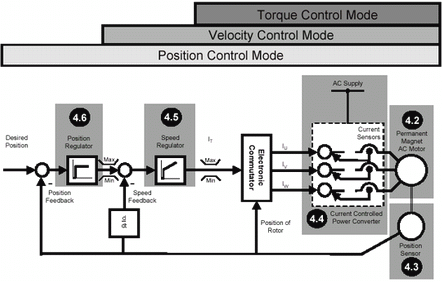 ควบคุมความเร็ว (Speed Control) ควบคุมแรงบิด (Torque Control) ควบคุมตำแหน่ง (Position Control) ควบคุมอัตราเร่ง (Velocity Control) |