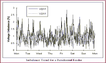 รูปที่10 แรงดันไม่สมดุลที่สายป้อนที่จ่ายไฟให้ที่พักอยู่อาศัย |