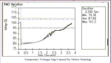 ![]() รูปที่ 6 Voltage Sag จากผลของการสตาร์ทมอเตอร์ขนาดใหญ่ |