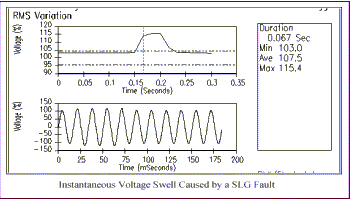 รูปที่ 7 Voltage Swell จากสาเหตุการเกิดความผิดพร่องทางไฟฟ้าลงดิน |