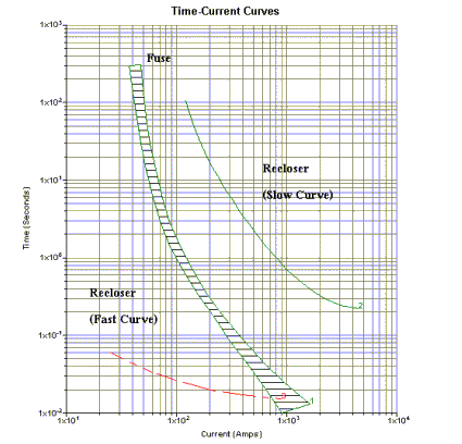 รูปที่ 3. แสดง Curve การทำงานของ Fuse และ Recloser |