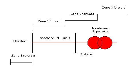 ![]() รูปที่ 5. แสดงการทำงานเป็น Zone ของ Distance Relay |