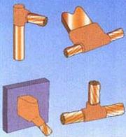 การใช้งานคอนเนคเตอร์แบบนี้มักจะใช้กับสายทองแดงในระบบสายดิน (Grounding) เช่นการต่อสายกับหลักดิน (Ground rod) และระบบตาข่ายสายดิน (Ground Grid) ซึ่งมีการใช้ในสถานีจ่ายไฟฟ้าย่อย (Substation) และโรงผลิต กระแสไฟฟ้า (Power Plant & Switch Yard) เป็นต้น ข้อเสียของคอนเนคเตอร์แบบนี้ - การตรวจสอบคุณภาพของรอยต่อเชื่อมไม่สามารถทำได้นอกจากการทำลายหรือผ่ารอยต่อเชื่อมออก - การเชื่อมต่อสายไม่สามารถที่จะกระทำในสถานที่เปียกหรือชื้นได้ - เวลาที่ใช้ในการต่อเชื่อมสายต่อจุดใช้เวลานานประมาณ 30 นาทีต่อจุด - พนักงานต่อเชื่อมสายต้องได้รับการอบรมพิเศษหรือเป็นผู้เชี่ยวชาญเฉพาะ - ต้องมีการใช้อุปกรณ์พิเศษเฉพาะสำหรับการต่อเชื่อมสาย 2. การต่อเชื่อมแบบลวดเชื่อมความร้อน(Brazed) 3. การต่อเชื่อมแบบใช้แรงอัด (Pressure Type) |