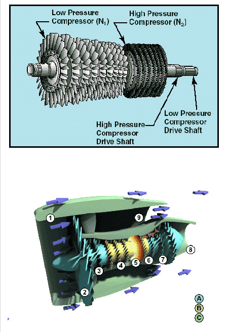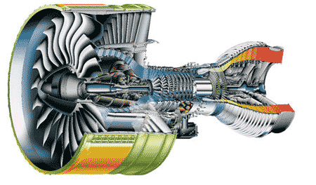 วิศวกรการบินเรียกอากาศในส่วนนี้ว่า Bypass Air เพื่อสร้างแรงขับดันโดยแรงขับที่มาจาก Fan นั้นจะมีค่าทางการคำนวณคิดเป็น 75% ของแรงขับทั้งหมดที่ได้รับจากเครื่องยนต์ อากาศส่วนแรกที่ไหลเข้าสู่เครื่องยนต์จะถูก Compressed Air บีบอัดจนมีความดัน อุณหภูมิ และความเร็วสูงขึ้นมาก อากาศที่ถูกอัดโดย Compressed Air นี้จะถูกจัดเรียงอย่างเป็นระเบียบเพื่อเข้าสู่ห้องเผาไหม้หรือ Combustor เมื่อเผาไหม้แล้วจะได้แก๊สร้อนความเร็วสูงออกมาหมุนชุด Turbine และผ่านออกไปยังท่อท้ายโดยมีชุด Mixture ซึ่งทำหน้าที่ผสม Bypass Air กับอากาศร้อน Exhaust ที่ออกมาจากเครื่องยนต์เพื่อการลดเสียงการทำงานของเครื่อง Gas Turbine เมื่อชุด Turbine หมุนชุด Compressor ซึ่งรวมถึง Fan ก็จะหมุนไปด้วยเนื่องจากชุด Turbine จะมีแกนต่อไปยัง Compressor และ Fan ด้วย ผลลัพธ์ที่เกิดขึ้นเมื่อเครื่องยนต์ถูกสตาร์ทคือ กระบวนการทำงานจะเป็นไปอย่างต่อเนื่องไปเรื่อยๆ หรือที่เรียกว่า Self Sustention จนกว่าเชื้อเพลิงจะหมดลงหรือถูกตัดการทำงานจากการยกเลิกการจ่ายเชื้อเพลิงให้กับเครื่องยนต์