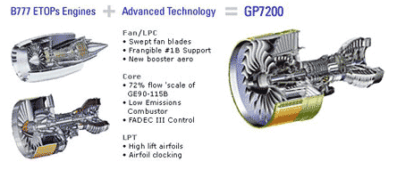 GP7200 เป็นเครื่องยนต์ที่มีความทันสมัยมากที่สุดแล้วในยุคนี้สำหรับการใช้งานในกิจการบินของพลเรือนในรูปแบบพาณิชย์ มันถูกพัฒนาจนได้รับความเชื่อถือในระดับสูงสุด เป็นเครื่องยนต์ที่เครื่องบินโดยสารและเครื่องบินลำเลียงทางทหารหลากหลายแบบต่างจับตามองด้วยความต้องการนำมาใช้งานจากคุณสมบัติดีเยี่ยมหลายประการ ส่วนเครื่องยนต์ของ Rolls Royce ในตระกูล Trent 900 ที่มีประจำการอยู่ใต้ปีกของ A380 นั้นก็มีประสิทธิภาพไม่แตกต่างจาก GP7200 มากนัก มันมีความใกล้เคียงกันมากทั้งด้านสมรรถนะ ขนาดและน้ำหนัก รวมถึงการสร้างแรงขับดันที่ทำออกมาได้เท่าๆ กัน เนื่องจากบริษัทผลิตเครื่องยนต์ของอากาศยานอย่าง Rolls Royce ก็มีความเชี่ยวชาญและประสบการณ์อันยาวนานในการคิดค้น ออกแบบและผลิตเครื่องยนต์ของอากาศยานมานานเกือบ 100 ปีแล้ว เครื่องยนต์ GP7200 และ Trent 900 ในปัจจุบันนี้ได้กลายมาเป็นทางเลือกใหม่ให้กับวงการบินพาณิชย์ในการเลือกใช้เครื่องยนต์ที่มีประสิทธิภาพและสมรรถนะโดยรวมโดดเด่นกว่าเครื่องยนต์เทอร์โบแฟนแบบอื่นๆ นับรวมแล้วมันมียอดสั่งซื้อเพื่อนำไปใช้งานถึง 230 ลำจากสายการบินชั้นนำทั่วโลก.