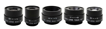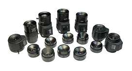 - Sensor size (ขนาดของตัวรับภาพ) เลนส์โดยทั่วไปนั้นจะสร้างภาพที่มีขนาดใหญ่พอสำหรับตัวเซ็นเซอร์ โดยที่เซ็นเซอร์ที่มีขนาดใหญ่ขึ้น ก็จะมีราคาที่สูงขึ้นตามไปด้วย โดยที่เลนส์ที่มีขนาด ½ นิ้ว ก็จะใช้งานได้สำหรับเซ็นเซอร์ที่มีขนาด 1/2 นิ้ว, 1/3 นิ้ว และ ¼ นิ้ว จะไม่สามารถใช้ได้กับเซ็นเซอร์ที่มีขนาด2/3 นิ้ว ถ้าคุณเลือกเลนส์สำหรับเซ็นเซอร์ขนาดเล็กมาใช้งานกับเซ็นเซอร์ที่มีขนาดใหญ่ ก็จะได้ภาพที่มีมุมเป็นสีดำ - Focal length (ความยาวของจุดโฟกัส) ความยาวของจุดโฟกัสประกอบกับขนาดของเซ็นเซอร์จะให้มุมที่ดูแตกต่างกัน โดยถ้าขนาดความยาวของโฟกัสสั้นจะให้มุมมองที่กว้าง(wide-angle view) ถ้าขนาดความยาวของจุดโฟกัสยาว จะให้มุมมองที่แคบลง(telephoto view) เลนส์ ที่มีมุมมองที่กว้าง(wide-angle view) จะมีมุมมองส่วนลึกของพื้นที่ได้ดีกว่าเลนส์ที่มีมุมมองแคบ(telephoto view) นั้นหมายความว่าคุณสามารถที่จะโฟกัสภาพเข้ามาใกล้ได้จากระยะไกล ซึ่งเลนส์ที่มีมุมมองแคบจะต้องการการโฟกัสภาพที่ถูกต้อง แน่นอนกว่า |
