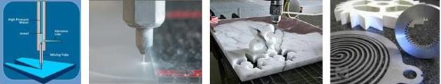 ในมุมมองของวัสดุนั้น waterjet สามารถใช้ในการตัด foam เหล็ก เกราะกันกระสุน Urethane Titanium Kevlar Aluminum Brass Copper Stainless steel Fiberglass Acrylic แผ่น Ceramics ไม้ ยาง กระจก หินอ่อน หินแกรนิต ฯลฯ