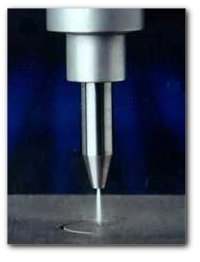 ในช่วงทศวรรตที่ 1950 Dr. Norman Franz ซึ่งเป็นวิศวกรป่าไม้ ได้พัฒนา pump น้ำแรงดันสูงมาใช้สำหรับการตัดไม้ ซึ่งถือเป็นการเริ่มต้นการนำเอา waterjet technology มาใช้ในกระบวนการตัดวัสดุ อย่างไรก็ตาม แนวคิดนี้ยังไม่ได้รับการพัฒนาจนกระทั่งช่วงทศวรรตที่ 1970 เมื่อ Dr. Mohamed Hashish ได้ทำการใส่วัสดุผงเข้าไปในลำของ waterjet กลายมาเป็น abrasive waterjet cutting ที่ใช้กันอยู่ในปัจจุบัน |