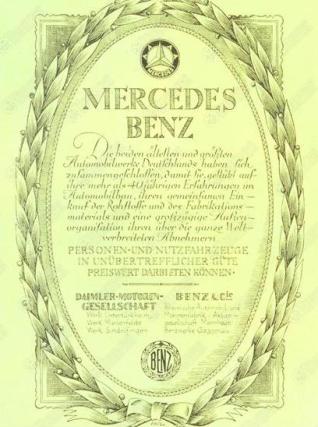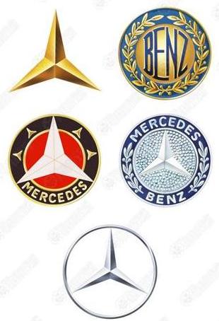 ส่วนกำเนิดตรา สัญลักษณ์รูปดาวสามแฉกที่ทุกคนรู้จักและจดจำมาจนกระทั่งทุกวันนี้ มาจากการที่กอตต์ลีบ เดมเลอร์ ได้นำรูปดาวไปติดไว้เหนือหลังคาบ้าน และเขียนจดหมายบอกกับภรรยาไว้ว่า สักวันหนึ่งดาวดวงนี้จะเปล่งประกายเหนือโรงงานของเขา ซึ่งเป็นสัญลักษณ์แห่งความรุ่งโรจน์ ซึ่งเขาได้นำเสนอต่อคณะกรรมการบริษัทดีเอ็มจี และได้รับการยอมรับ จนได้นำไปจดทะเบียนเครื่องหมายการค้าในรูปของดาวสามแฉกในเดือนมิถุนายน ปี 1909 และติดตั้งเป็นตราสัญลักษณ์อันโดดเด่นเหนือกระจังหม้อน้ำรถยนต์ตั้งแต่ปี 1910 เป็นต้นมา พอหลังจากสงครามโลกครั้งที่ 1 อุตสาหกรรมรถยนต์อยู่ในช่วงขาลง เนื่องจากเศรษฐกิจตกต่ำ ดีเอ็มจี และเบนซ์ & ซี จึงได้ร่วมมือด้านการตลาดร่วมกันในปี 1924 เพื่อให้สามารถแข่งขันและยืนหยัดอยู่ในสถานการณ์นั้นได้ แต่ทั้งสองบริษัทยังคงใช้เครื่องหมายการค้ากันคนละแบบ จนกระทั่งในเดือนมิถุนายน ปี 1926 ทั้งสองจึงได้รวมกิจการเป็นบริษัทเดียวกันภายใต้ชื่อ “เดมเลอร์-เบนซ์ เอจี” และได้มีการออกแบบเครื่องหมายการค้าใหม่ขึ้น โดยนำเอาลักษณะเด่นในสัญลักษณ์ของทั้งสองบริษัทมาใช้ คือ ดาวสามแฉกที่รอบล้อมด้วยชื่อ เมอร์เซเดส และเบนซ์ โดยมีช่อชัยพฤกษ์เป็นตัวเชื่อม ทำให้กลายเป็นเครื่องหมายการค้า “เมอร์เซเดส-เบนซ์” ซึ่งเป็นสัญลักษณ์ที่สื่อถึงคุณภาพและความปลอดภัยที่มีความเป็นมาอันยาวนาน จนกลายเป็นคำสามัญที่ทุกคนทั่วโลกรู้จัก
