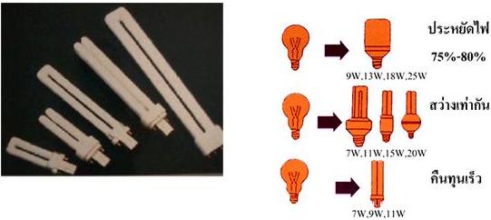( * หมายเหตุ หลอดคอมแพกต์ฟลูออเรสเซนต์ ไม่ได้ประหยัดกว่าหลอดฟลูออเรสเซนต์ และ ไม่สามารถใช้แทนการใช้งานหลอดไส้ได้หมด เนื่องเพราะหลอดแต่ละหลอดมีลักษณะและความเหมาะสมในการใช้งานแตกต่างกัน เช่น การใช้แสงที่ให้ประกายแสง (ในโคมระย้า) หรือ ให้ความถูกต้องของสีที่ดีมาก หรือ ต้องการหลอดขนาดเล็ก ก็ยังคงอาจจำเป็นต้องใช้หลอดไส้อยู่ )