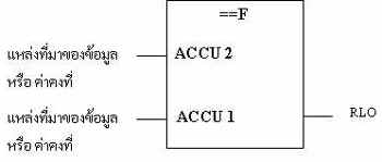 คำสั่งนี้จะใช้ในการเปรียบเทียบข้อมูลดิจิตอลภายในหน่วยความจำแอคคิวมูเลเตอร์ 1 (ACCU 1) กับหน่วยความจำแอคคิวมูเลเตอร์ 2 (ACCU 2 ) สถานะเอ้าท์พุทของการเปรียบเทียบจะเก็บไว้ที่ผลลัพธ์การปฏิบติการลอจิก (RLO) เมื่อการเปรียบเทียบ เป็นจริง (True) สถานะเอ้าท์พุทจะเป็น “1” ถ้าการเปรียบเทียบเป็นเท็จ (False) สถานะ เอ้าท์พุทจะเป็น “0”