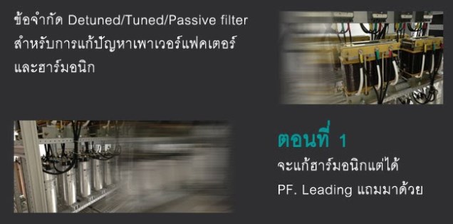การแก้ปัญหาคุณภาพกำลังไฟฟ้าในปัจจุบันเป้าหมายส่วนใหญ่ได้แก่การปรับปรุง ค่า Power Factor (PF.) ให้มีค่าสูงกว่า 0.85 เพื่อกำจัดค่าปรับ PF. จากการไฟฟ้า ซึ่งโดยส่วนใหญ่ก็จะคิดถึง Cap Bank หรือในกรณีที่ระบบไฟฟ้ามีกระแสฮาร์มอนิกจนมีความเสี่ยงสูงที่จะเกิดปัญหา เรโซแนนซ์ก็จะติดตั้ง Detuned Filter เพื่อหลีกเลี่ยงปัญหาดังกล่าวข้อดีประการหนึ่งของการติดตั้งใช้งาน Detuned Filter ก็คือปริมาณกระแสฮาร์มอนิกในลำดับที่ 5 (กรณีใช้ Reactor 6% หรือ 7%) เป็นต้นไปจะสามารถถูกทำให้ลดลงประมาณ 50% ได้ โดยถ้าต้องการให้ปริมาณกระแสฮาร์มอนิกถูกกำจัดมากกว่าที่ Detuned Filter ทำได้ก็จะพิจารณาเป็น Tuned Filter หรือ Passive Filter แทน