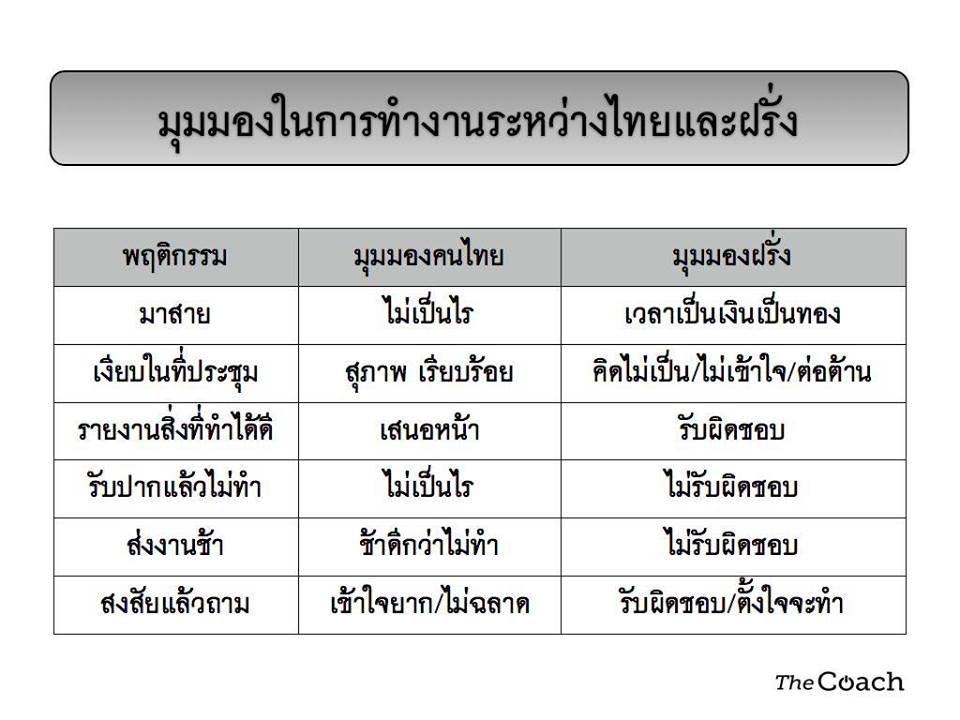 มุมมองในการทำงานระหว่างไทยและฝรั่ง