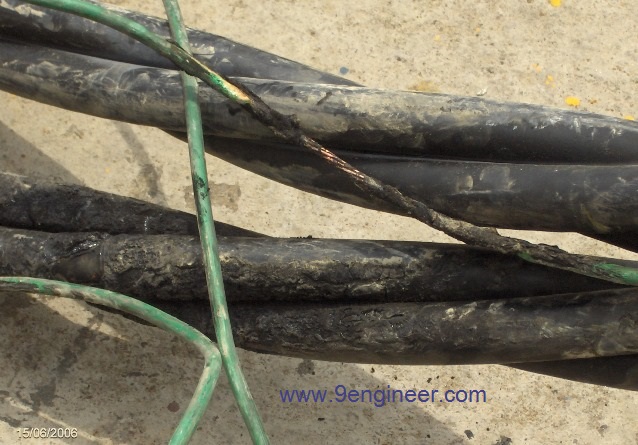 ภาพที่นำมาแสดงต่อไปนี้ เป็นภาพที่เกิดกับสายเคเบิลที่ต่อมาจาก Medium Voltage Switchgear 3.3 KV ซึ่งวางสายมาตามท่อเพื่อจ่ายกระแสไฟฟ้าให้กับเครนยกตู้สินค้า (ดังภาพด้านบน)