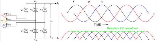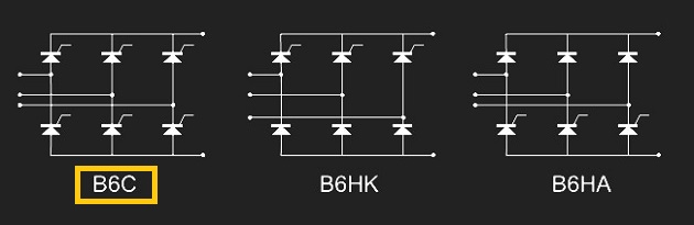 6 = จำนวนพัลส์หรือลูกคลื่นทางด้านเอาท์พุต ซึ่งถ้าเป็นวงจรเรียงกระแสแบบสามเฟสจะมีเอาท์พุท 6 คลื่นซึ่งก็จะเรียกว่า B6