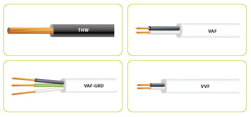 - เป็น สายไฟฟ้าที่มีชนิดของฉนวนเป็น PVC ทนอุณหภูมิได้ 70 c และ ตัวนำเป็นทองแดงแรงดันไฟฟ้า 300 v, 600 v และ 750 v ตามมาตรฐานของ ส.ม.อ. ( TIS ) เช่นสายไฟฟ้าชนิด THW, VAF, VAF-GRD