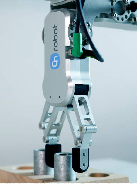 อุปกรณ์หยิบจับอัจฉริยะของออนโรบอต OnRobot’s RG2-FT ซึ่งเปิดตัวที่งาน 2018 International Manufacturing Technology Show มีการติดตั้งเซ็นเซอร์รับแรงกระทำ/แรงบิดและเซ็นเซอร์ตรวจจับวัตถุใกล้เคียงแบบ 6 แกน ทำให้มันสามารถควบคุมทั้งตัวมันเองและหุ่นยนต์ให้ทำงานตามที่มนุษย์ผู้ควบคุมต้องการได้แม้จะไม่ได้ตั้งโปรแกรมกำหนดค่าตัวแปรที่แน่นอนไว้ล่วงหน้าก็ตาม ซึ่งก่อให้เกิดการทำงานร่วมกันอย่างแท้จริงระหว่างมนุษย์ผู้ปฏิบัติงานและการสนับสนุนจากหุ่นยนต์ผู้เป็นเสมือนเพื่อนร่วมงาน