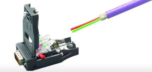 สาย PROFIBUS เปลือกเกือบทั้งหมดจะเป็นสีม่วง ภายในมีสาย 2 เส้นหรือ 2 คอร์ คือสีแดงและสีเขียว |