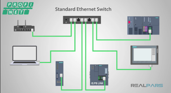 เราสามารถใช้อุปกรณ์ Ethernet มาตรฐานกับ PROFINET ไม่ว่าจะเป็น