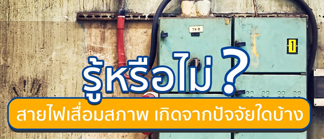 ก่อนอื่นเรามาทำความเข้าใจกันก่อนว่าสายไฟฟ้าในบ้านประกอบด้วยส่วนประกอบหลักๆคือตัวนำทองแดงและฉนวนหรือเปลือก ที่ทำจากพลาสติก PVC การที่สายไฟเสื่อมสภาพเกิดจากฉนวนหรือเปลือก PVC เกิดการเสื่อมสภาพจากผลของสภาพแวดล้อมที่สายติดตั้งอยู่ จนไม่สามารถป้องกันการรั่วไหลของกระแสไฟฟ้าได้ดีดังเดิม สำหรับปัจจัยสำคัญที่ส่งผลต่อการเสื่อมสภาพของสายไฟฟ้านั้นได้แก่