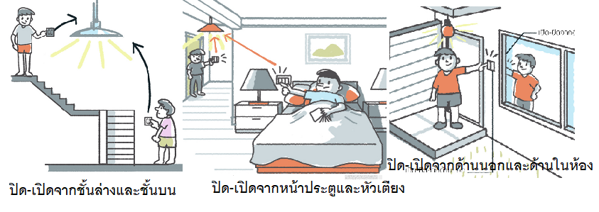 - สวิตซ์ควบคุมแสงสว่างบันไดบ้าน ซึ่งสามารถ เปิด-ปิด ได้จากชั้นบนและชั้นล่าง