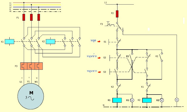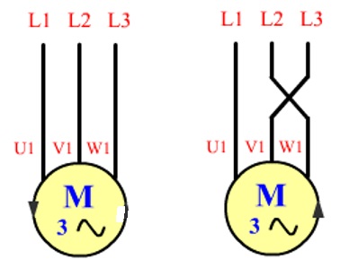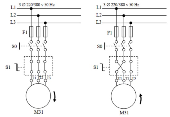 (สลับเฟสของกระแสไฟฟ้าที่จ่ายให้มอเตอร์คู่ใดคู่หนึ่ง)