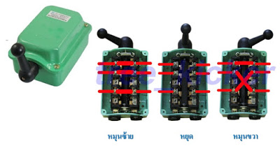 ภาพแสดง ลักษณะดรัมสวิตซ์ที่ใช้ในการควบคุมการกลับทางหมุนของมอเตอร์ 3 เฟส