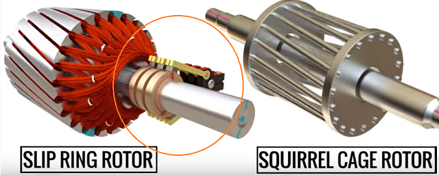 เปรียบเทียบโครงสร้างโรเตอร์ของอินดัคชั่นมอเตอร์แบบกรงกระรอก กับ สลิปริง มอเตอร์