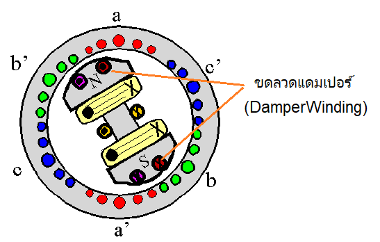 1. ติดตั้งขวดขดลวดแดมเปอร์ (Damper Winding) ที่ผิวหน้าของขััวแม่เหล็กโรเตอร์ ดังรูปตัวอย่างด้านล่าง