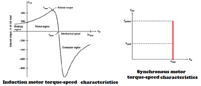 คุณสมบัติด้านความเร็วและแรงบิดของมอเตอร์แบบซิงโครนัส ซึ่งเปรียบเทียบกับอินดัคชั่น